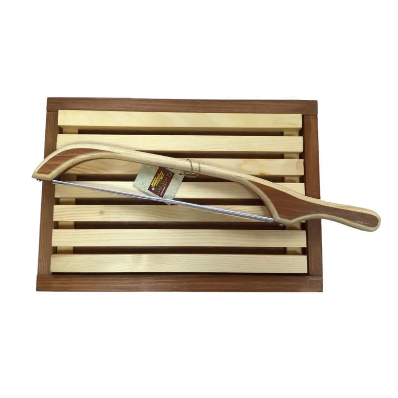 Ensemble de scie à pain et planche ramasse-miette cognac